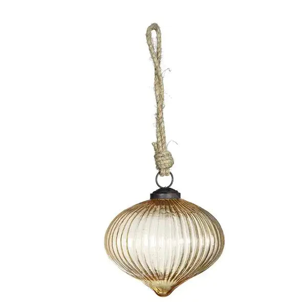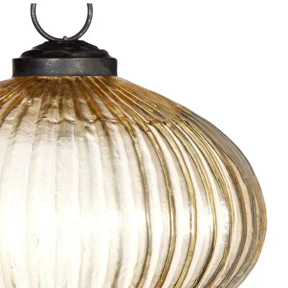 Specification Dimensions: 3.9 in * 3.9 in * 3.9 in Weight: 0.24 lb Available Ship to: United States Main Color: Amber Main Material: Glass Details Product Features: Transforming the classic glass bauble into a work of art, each piece showcases an alluring gold finish, a rounded silhouette that leads toward a pointed bottom, and a striking ribbed texture. Measuring 4"H x 4"D, each bauble is an ideal size to adorn your Christmas tree, create elegant garland displays, or serve as a commanding addition to festive tabletop centerpieces As versatile as they are elegant, each bauble will capture the eye from your Christmas tree, custom garland display, or creative tabletop centerpiece. Product Details100% GlassSpecification Measurement:3.9x3.9x3.9(Inches)/each Weight:0.2lbs/each Description: The Design Transforming the classic glass bauble into a work of art, each piece showcases an alluring gold finish, a rounded silhouette that leads toward a pointed bottom, and a striking ribbed texture.